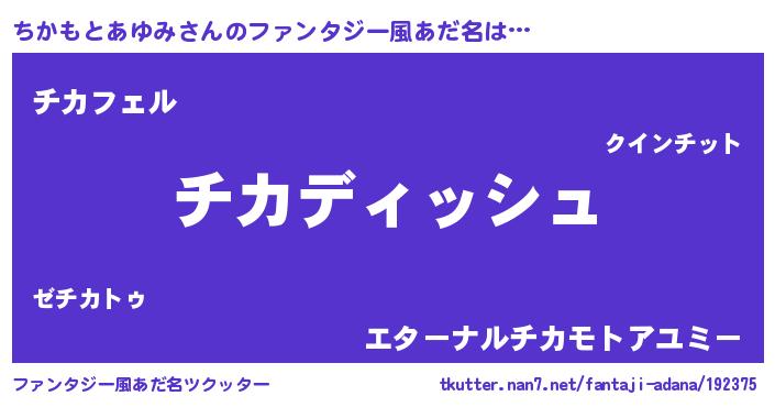 | 男性向けラノベタイトル風あだ名 | 『ちかもとあゆみという概念が存在しない退屈な世界 』 |