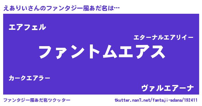 | 女子向けラノベタイトル風あだ名 | 『えありいは平凡を望む』 |