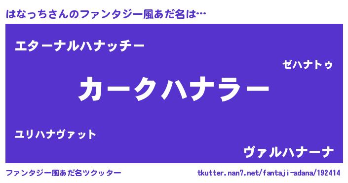 | 欧米人風あだ名 | 『はなっち・ステッグマイヤー』 |