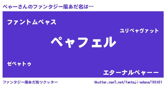 | ヒーロー風カッコイイあだ名 | 『スーパーペャー』『魔戒騎士ペャ』 |