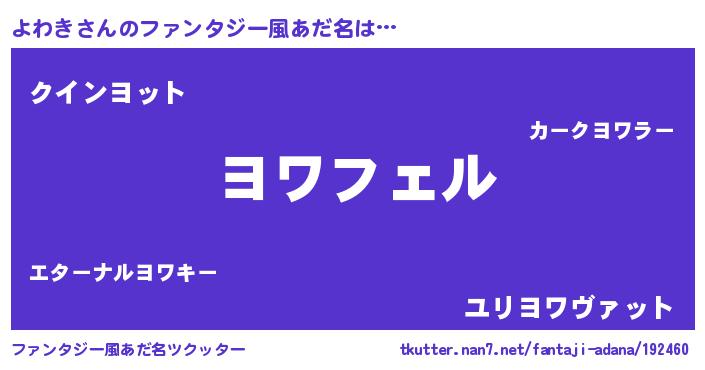 | ヒーロー風カッコイイあだ名 | 『スーパーヨワキ』『天空の使者よわき』 |
