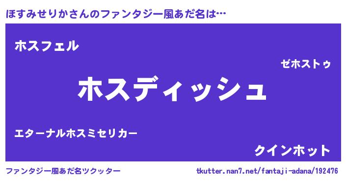 | ヘコむあだ名 | 『ほすみせりか(笑)』『ほすっふぃ~』 |