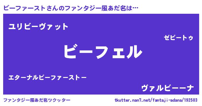 | 男性向けラノベタイトル風あだ名 | 『ビーファーストの憂鬱』 |