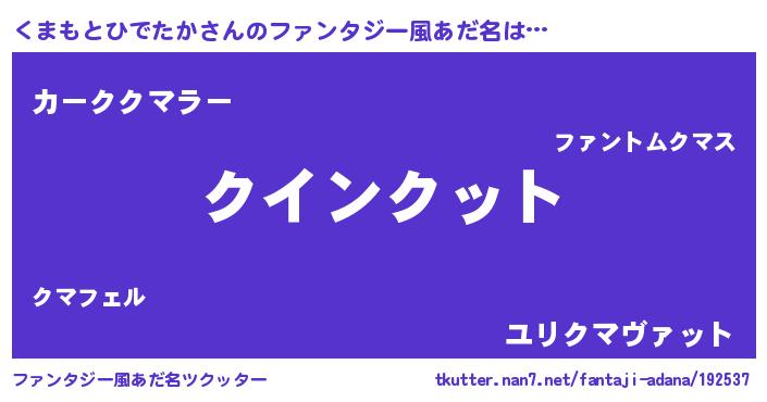 | 男性向けラノベタイトル風あだ名 | 『ノーゲーム・ノークマモトヒデタカ』 |