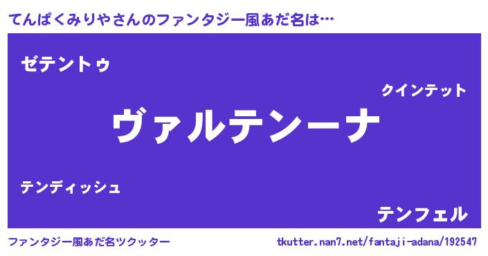 | 女子向けラノベタイトル風あだ名 | 『乙女ゲームの破滅フラグしかない悪役てんぱくみりやに転生してしまった…』 |