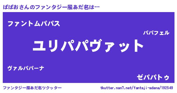 | ヒーロー風カッコイイあだ名 | 『幻影騎士パパ』『サイバー戦士パパオ』 |