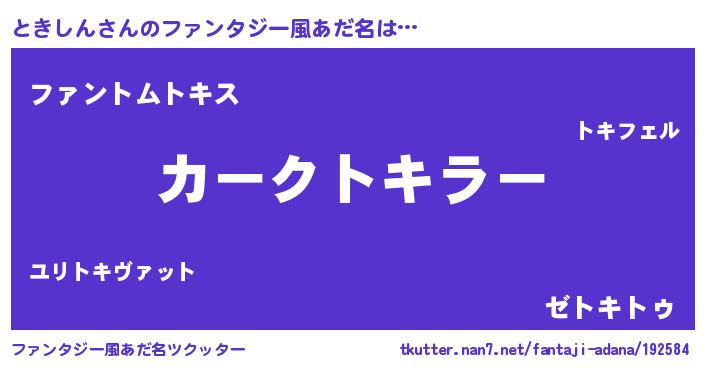 | ヒーロー風カッコイイあだ名 | 『幻影騎士トキ』『究極戦士トキシン』 |