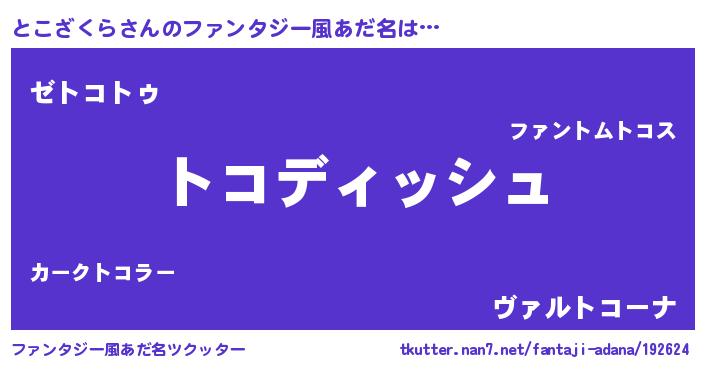 | 意味不明あだ名 | 『永久保存とこざくら』『自称とこざくら』 |