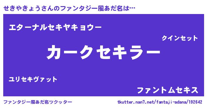 | 意味不明あだ名 | 『せきやきょうフォーエバー』 |