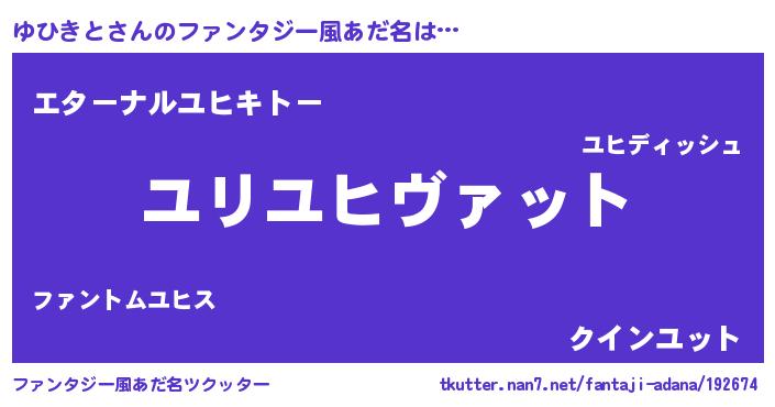 | ポケモン風あだ名 | 『ユヒキング』『ユヒゴンZ』 |