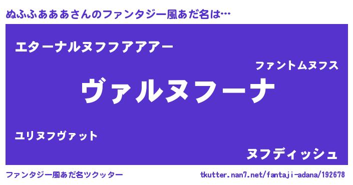 | 男性向けラノベタイトル風あだ名 | 『魔弾の王とぬふふあああ』 |