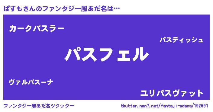 | 女子向けラノベタイトル風あだ名 | 『(仮)ぱすものやんごとなき事情』 |