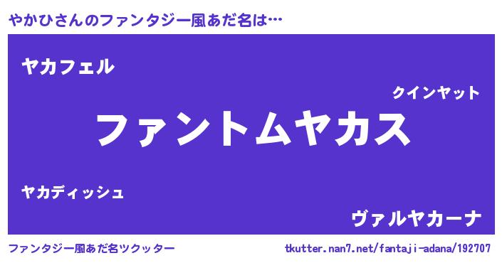 | ヒーロー風カッコイイあだ名 | 『暗黒騎士ヤカ』『スーパーヤカヒ』 |