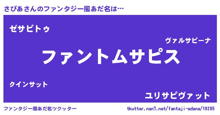 | ポケモン風あだ名 | 『ヒサピア』『サピセウス』 |