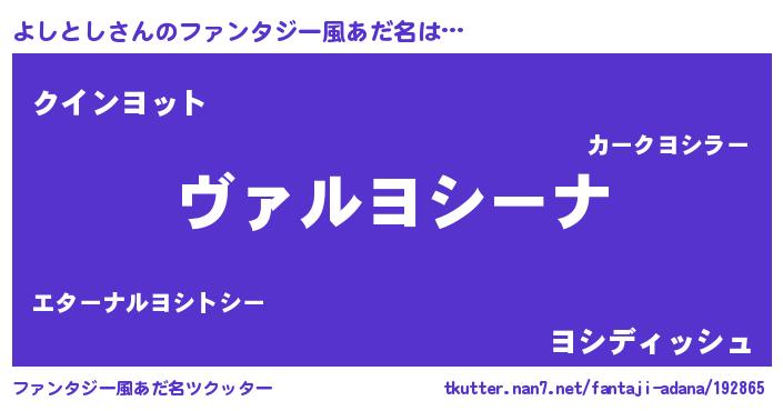 | 男性向けラノベタイトル風あだ名 | 『魔弾の王とよしとし』『緋弾のヨシトシ』 |