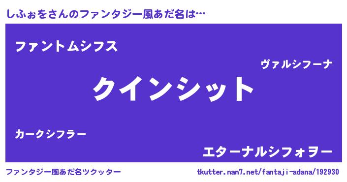| ヒーロー風カッコイイあだ名 | 『慈愛の使者しふぉを』『暗黒騎士シフ』 |