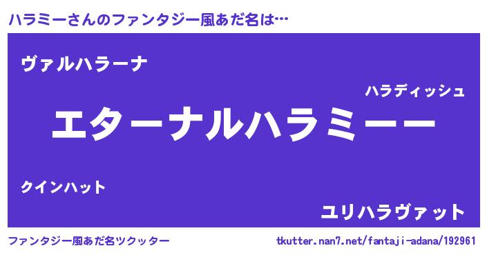 | ポケモン風あだ名 | 『ハラミダネ』『ハーライ』 |