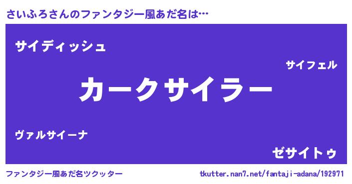 | ヘコむあだ名 | 『さいふろ(小並感)』『さいにー』 |