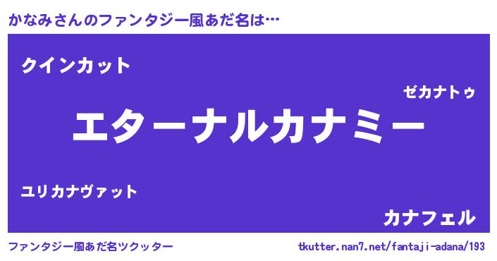 | 自動車の名前っぽいあだ名 | 『カスラー』『カンR』『カナティマ』 |