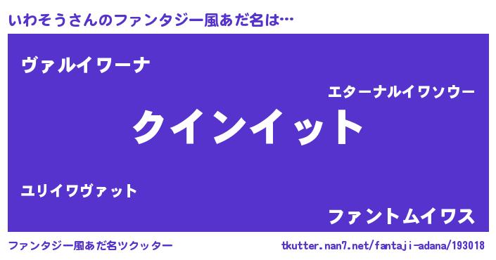 | 男性向けラノベタイトル風あだ名 | 『ノーゲーム・ノーイワソウ』 |