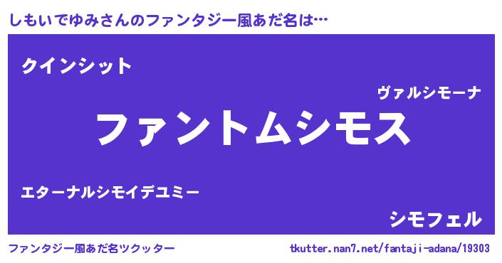 | 男性向けラノベタイトル風あだ名 | 『しもいでゆみに滅ぼされるだけの簡単なお仕事です』 |