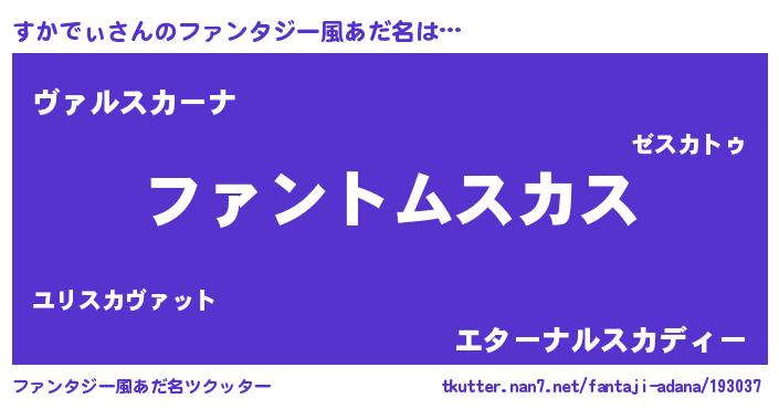 | 男性向けラノベタイトル風あだ名 | 『すかでぃの嫁は女の子じゃないと思った?』 |