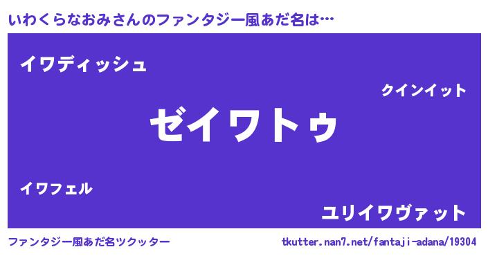 | 男性向けラノベタイトル風あだ名 | 『Re:いわくらなおみから始める異世界生活』 |