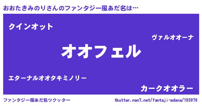 | 男性向けラノベタイトル風あだ名 | 『オオタキミノリアートオンライン』 |