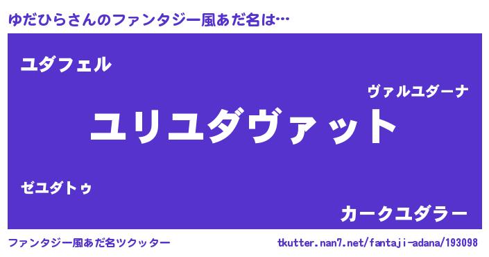 | 男性向けラノベタイトル風あだ名 | 『ゆだひら~年齢イコール彼女いない歴の魔法使い~』 |
