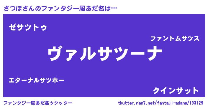 | 女子向けラノベタイトル風あだ名 | 『乙女ゲームの破滅フラグしかない悪役さつほに転生してしまった…』 |