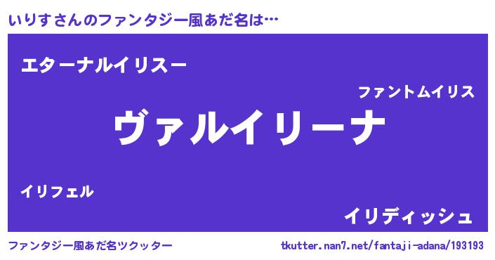 | ポケモン風あだ名 | 『イーリイ』『イリスダネ』 |