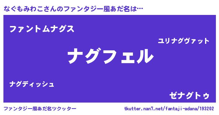 | ヒーロー風カッコイイあだ名 | 『スーパーナグモミワコ』『幻影騎士ナグ』 |