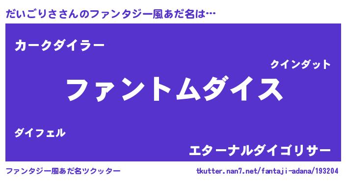 | ヒーロー風カッコイイあだ名 | 『魔戒騎士ダイ』『友情の使者だいごりさ』 |