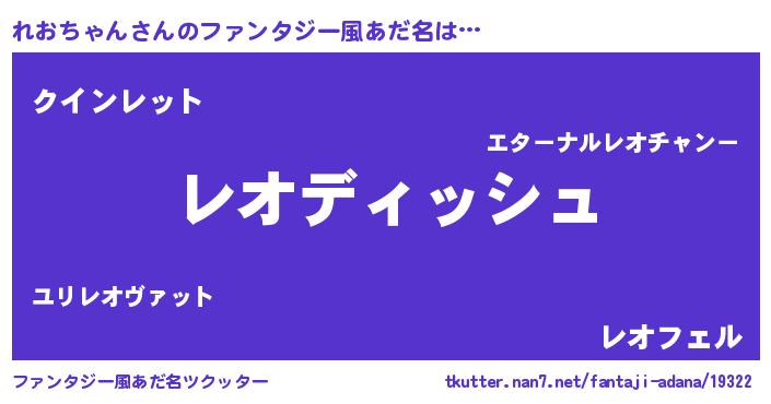 | 伝説のあだ名 | 『聞きしに勝る暗殺者れおちゃん』 |
