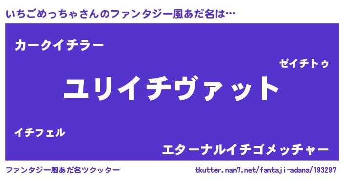 | 女子向けラノベタイトル風あだ名 | 『いちごめっちゃの玉の輿計画!』 |