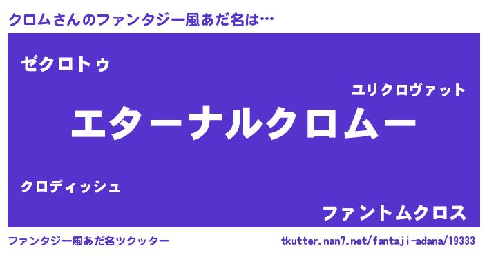 | 意味不明あだ名 | 『クロムフォーエバー』『自称クロム』 |
