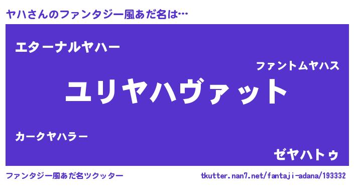 | ポケモン風あだ名 | 『ヤハキング』『ヤハダネ』『ヒヤハ』 |