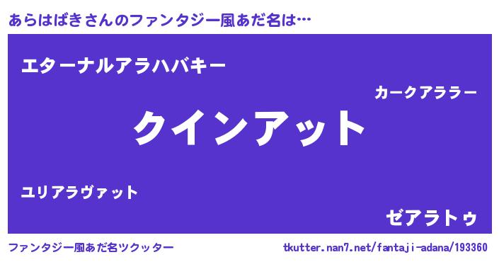 | 男性向けラノベタイトル風あだ名 | 『はたらくあらはばきさま!』 |