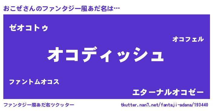 | 男性向けラノベタイトル風あだ名 | 『おこぜという概念が存在しない退屈な世界 』 |