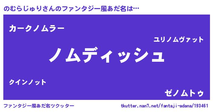 | ヒーロー風カッコイイあだ名 | 『ネオノムラジュリ』『暗黒騎士ノム』 |