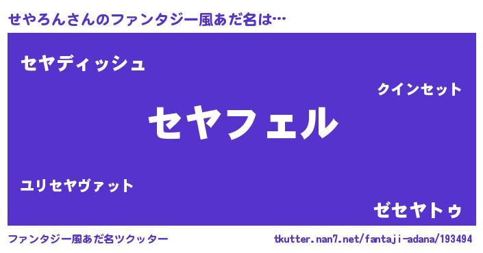 | ヒーロー風カッコイイあだ名 | 『スーパーセヤロン』『ネオセヤロン』 |