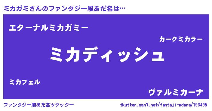 | ヒーロー風カッコイイあだ名 | 『ネオミカガミ』『ウルトラミカガミマン』 |