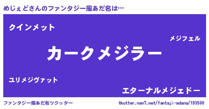 | 伝説のあだ名 | 『魔王と互角に渡り合う占い師めじぇど』 |
