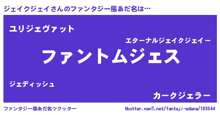 | 男性向けラノベタイトル風あだ名 | 『ダンジョンにジェイクジェイを求めるのは間違っているだろうか』 |