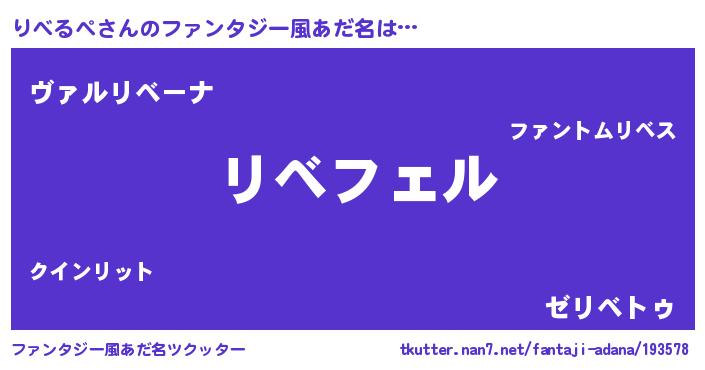 | 男性向けラノベタイトル風あだ名 | 『りべるぺの憂鬱』『魔弾の王とりべるぺ』 |