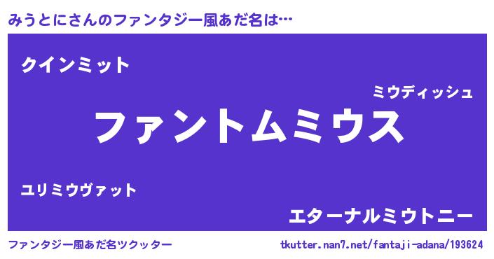 | ヒーロー風カッコイイあだ名 | 『魔戒騎士ミウ』『慈愛の使者みうとに』 |