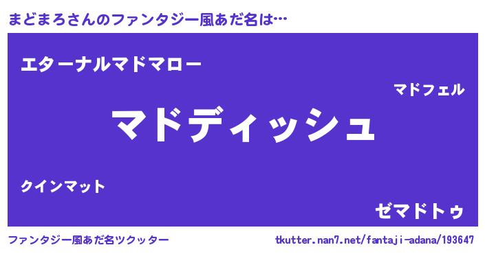 | 胡散臭い通販商品みたいなあだ名 | 『来世でも幸せになれる健康食品…その名も「まどまろ」』 |