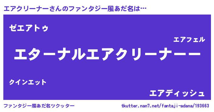 | 自動車の名前っぽいあだ名 | 『エクア』『メルエアス・エンツ』 |