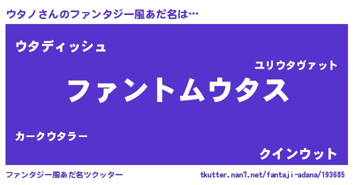 | 胡散臭い通販商品みたいなあだ名 | 『信頼と実績のサプリメント…その名も「ウタノ」』 |