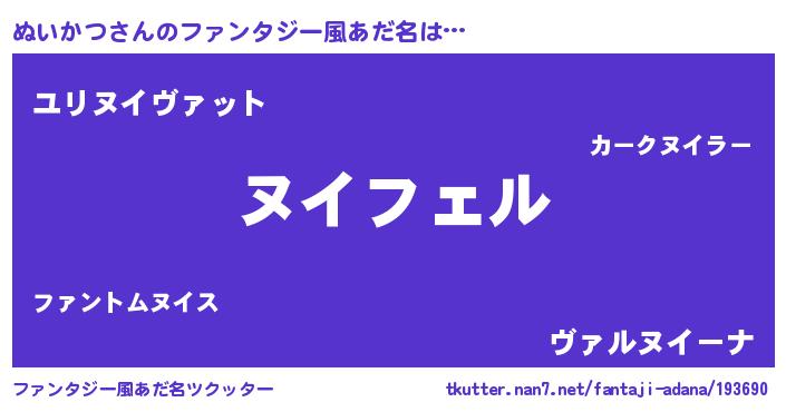 | 男性向けラノベタイトル風あだ名 | 『ぬいかつに滅ぼされるだけの簡単なお仕事です』 |